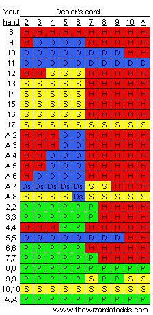 Use these tables to help when playing blackjack online, they are designed specifically for online gambling use.